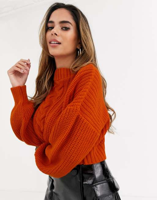 Missguided Cropped Cable Knit Sweater In Orange Asos